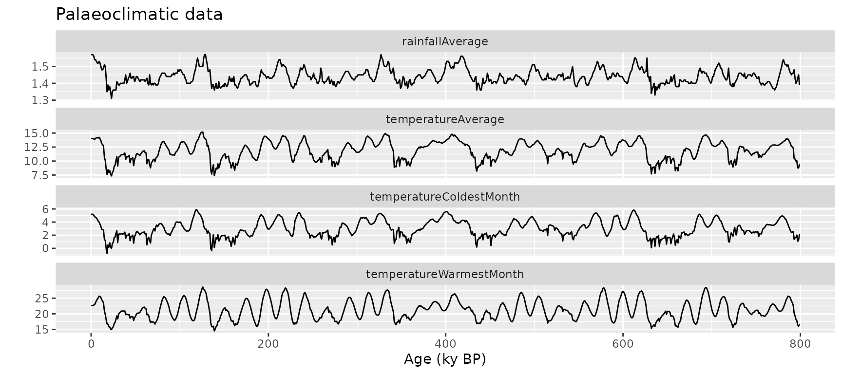 #> [1] "climate.temperatureAverage" "climate.rainfallAverage"Note on oldest.sample: Set to