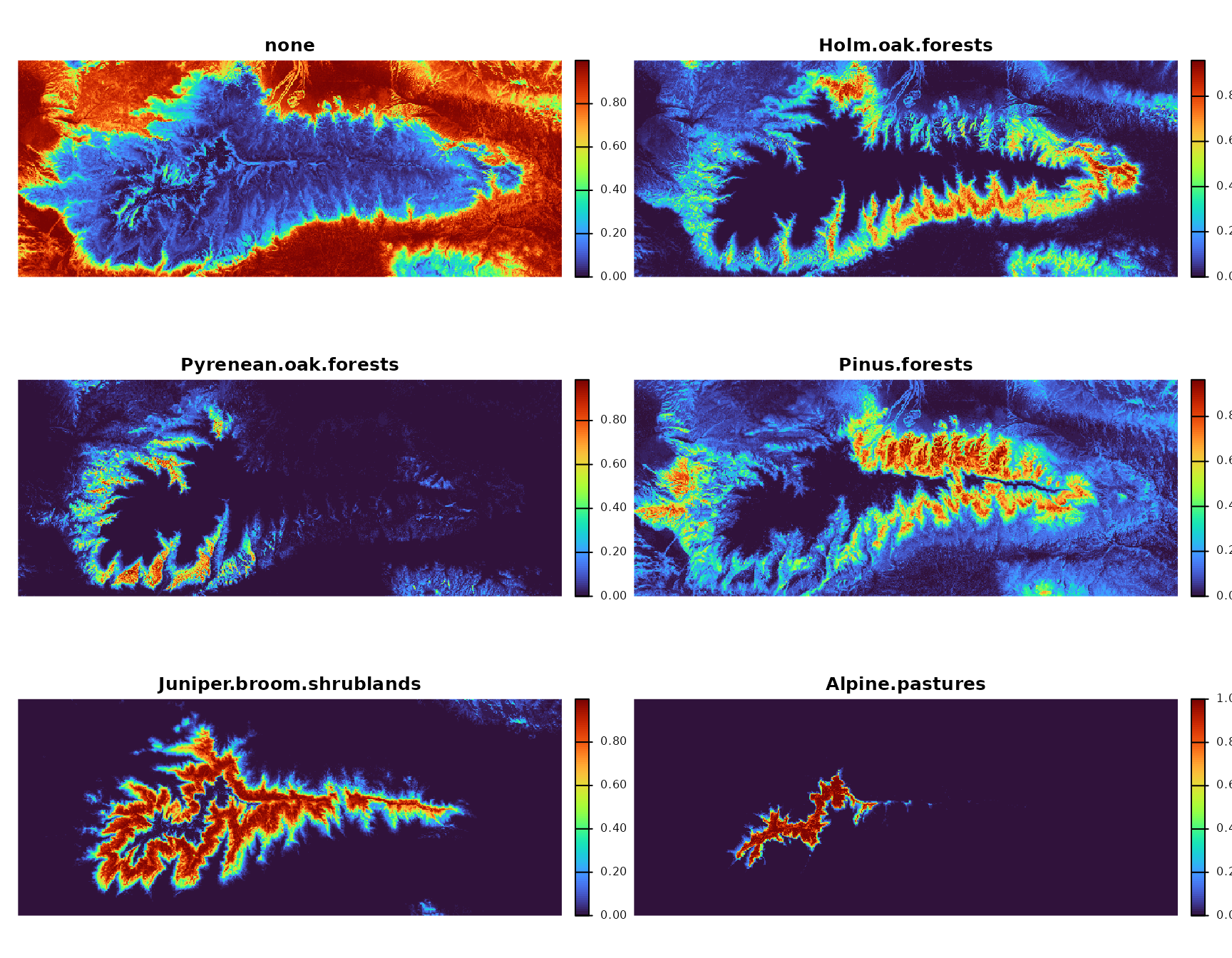 | Pyrenean oak forests | 99.9 | 0.0 | 0.1 | 0.0 | 0.0 |