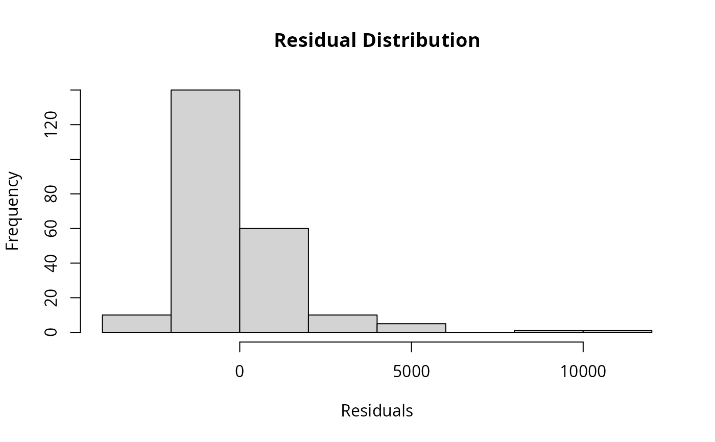 hist(residuals, main = "Residual Distribution", xlab = "Residuals")